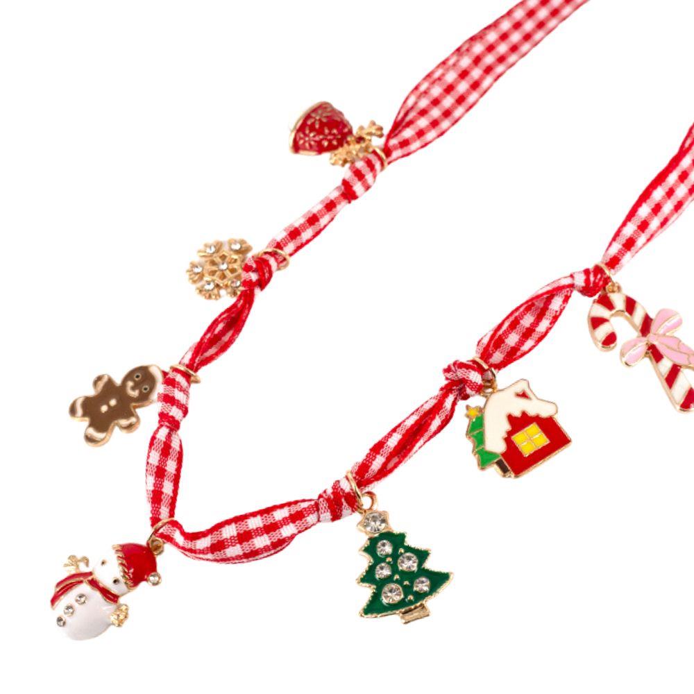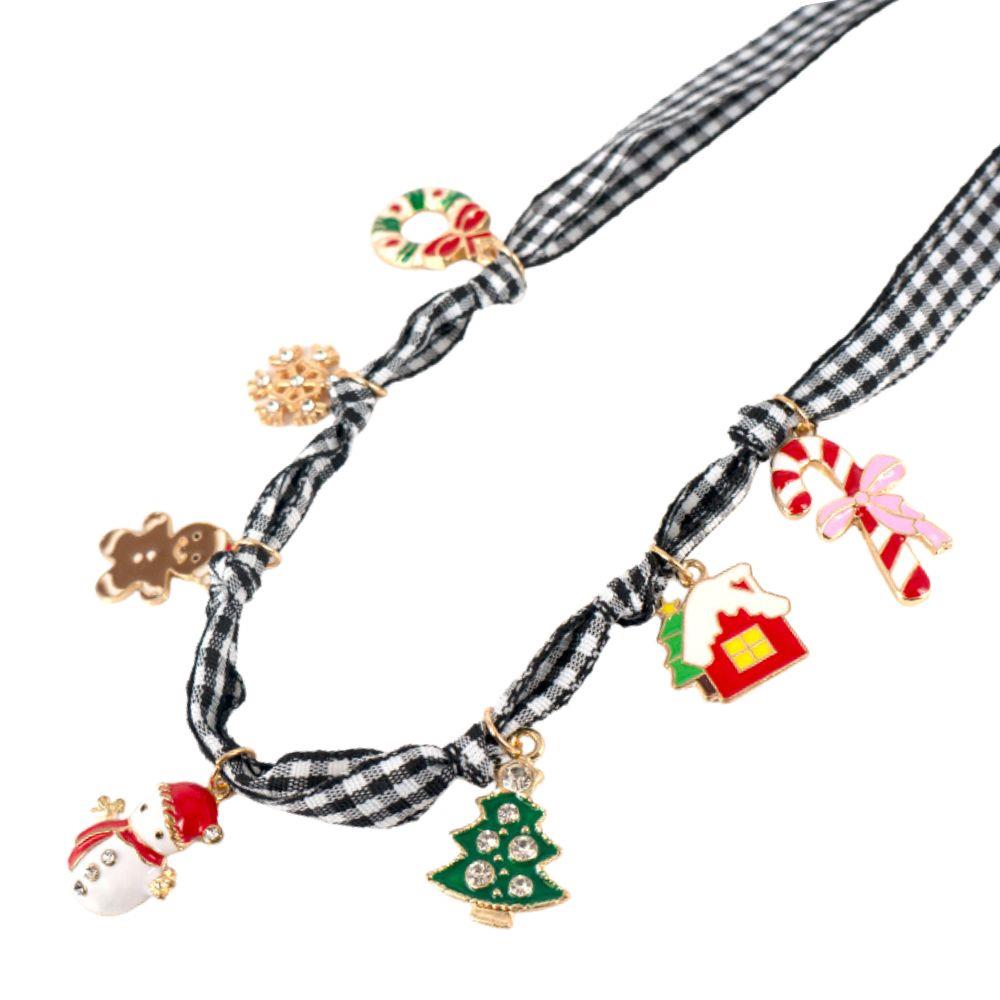 CHRISTMAS THEME CHARMS CHECKERED PATTERN NECKLACE