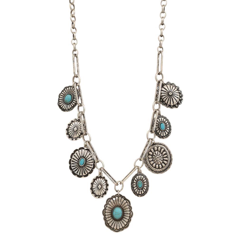 WESTERN CONCHO TURQUOISE STONE METAL NECKLACE