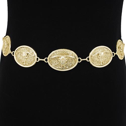 WESTERN METAL ENGRAVED OVAL CONCHO CHAIN BELT