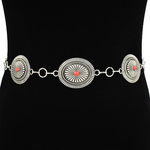 METAL ENGRAVED ROUND CONCHO CHAIN BELT
