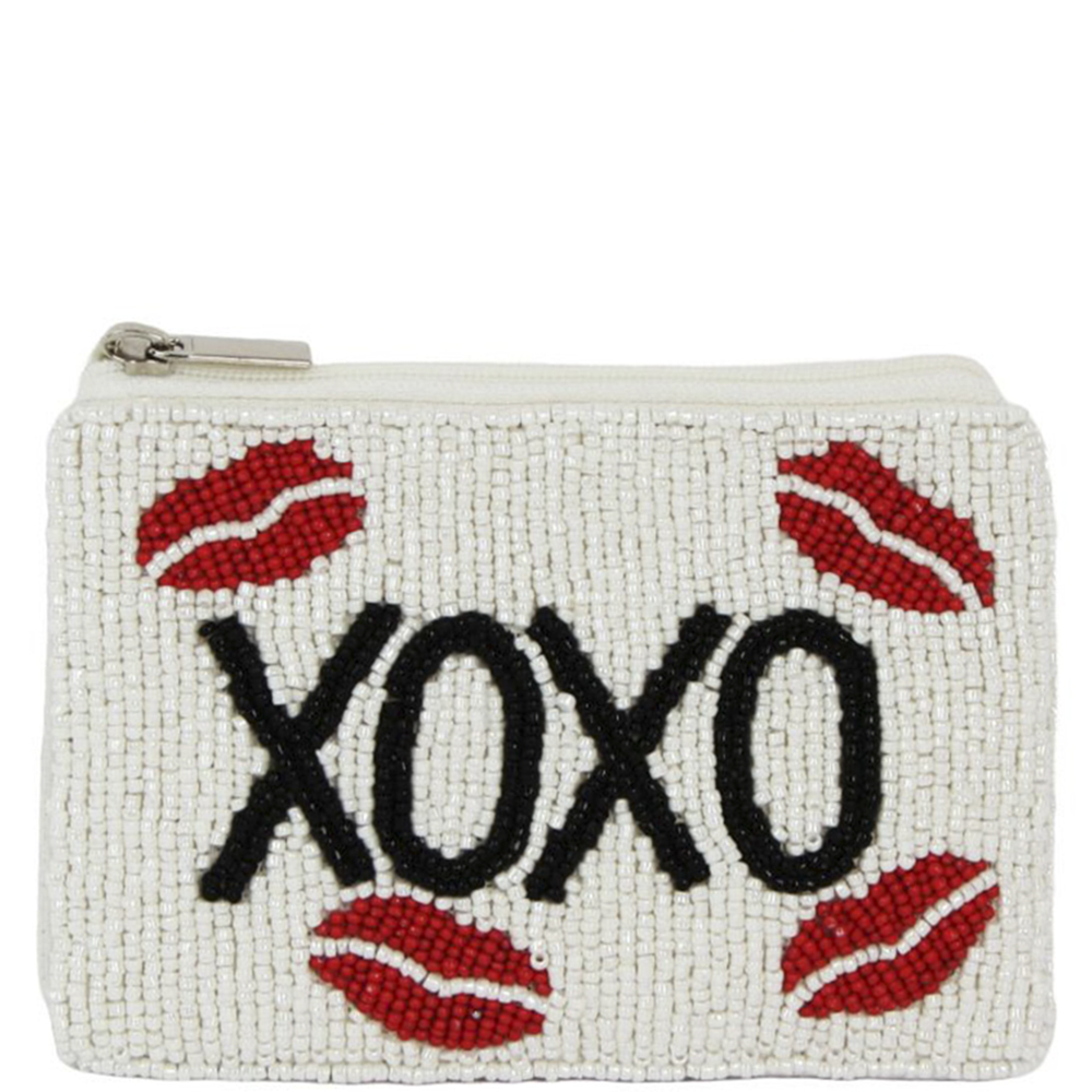 XOXO BEADED ZIPPER COIN PURSE BAG POUCH