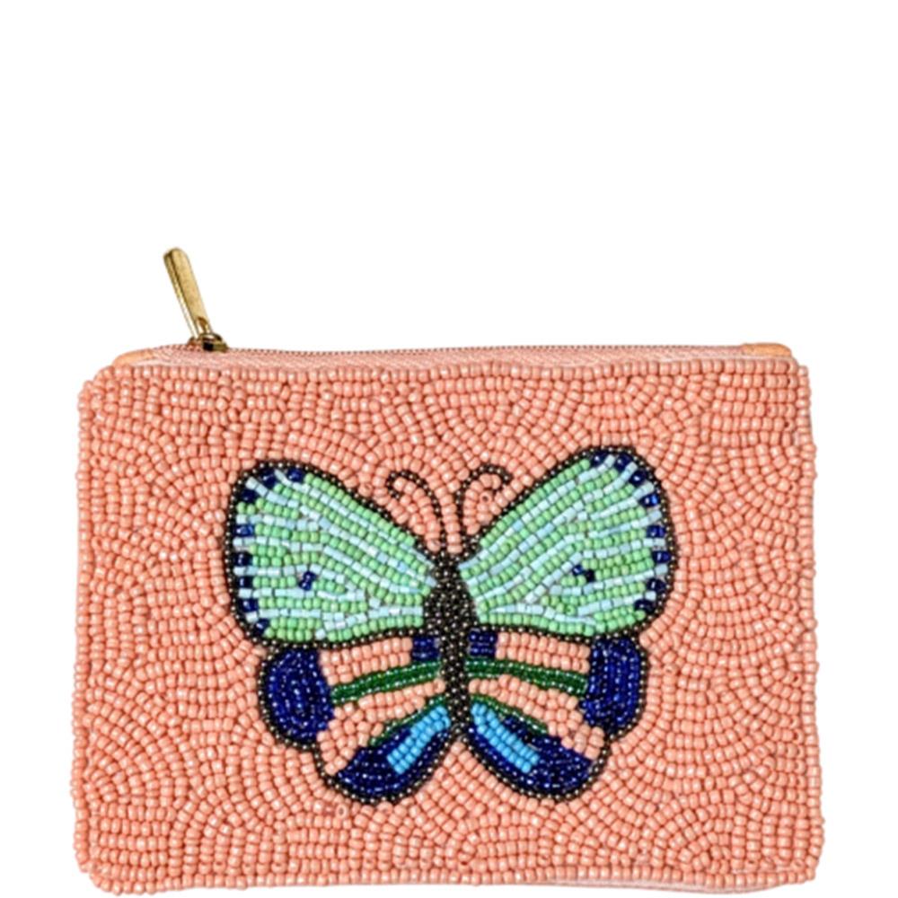 BUTTERFLY SEED BEAD COIN PURSE BAG