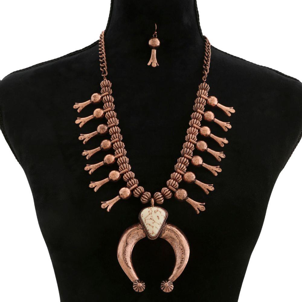 FASHION WESTERN STYLE STONE BEAD NECKLACE EARRING SET