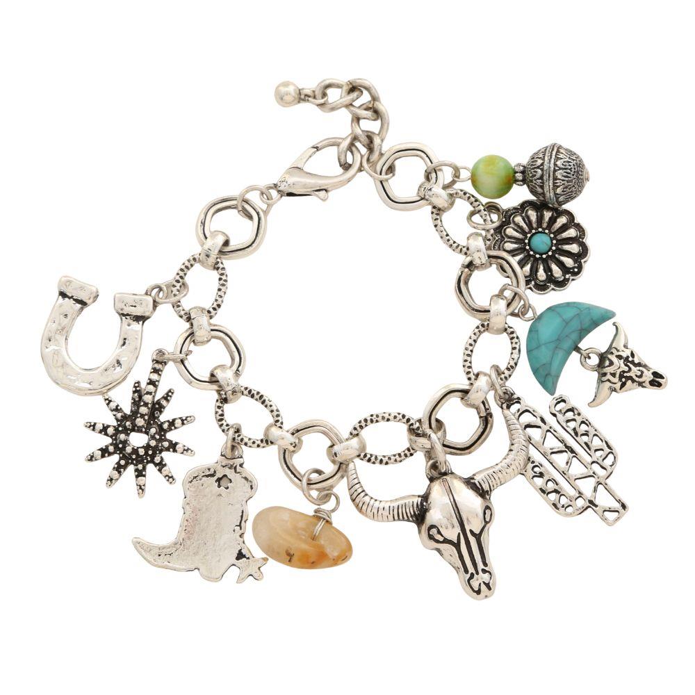 WESTERN CHARMS BEADED CIRCLE LINK BANGLE BRACELET