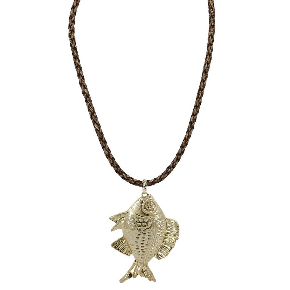 HAMMERED METAL FISH PENDANT SCARF NECKLACE