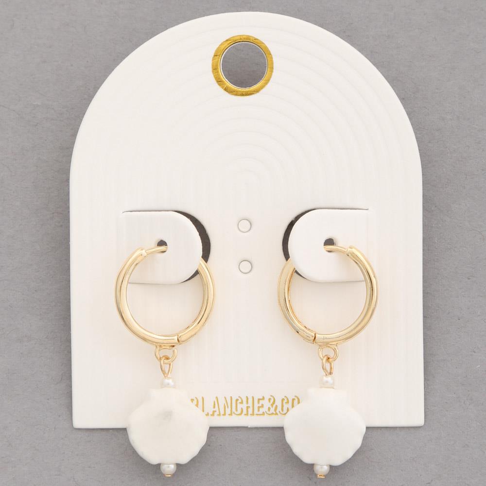 BRASS- CERAMIC SEASHELL CHARM HUGGIE EARRING