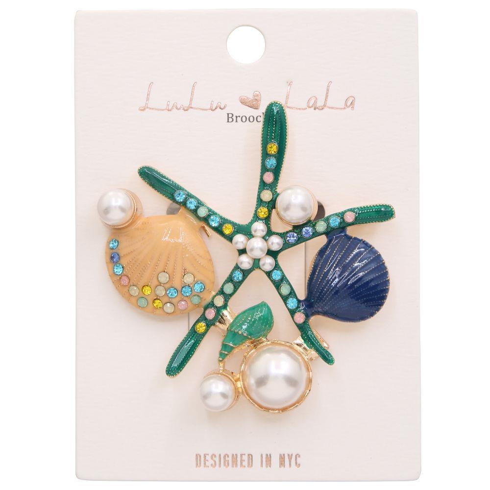 METAL RHINESTONE PEARL SEASHELL STARFISH BROOCH PIN