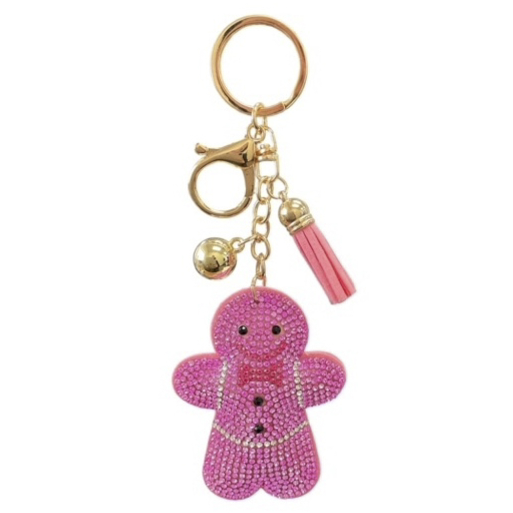 RHINESTONE CHRISTMAS GINGERBREAD KEYCHAIN WITH TASSEL