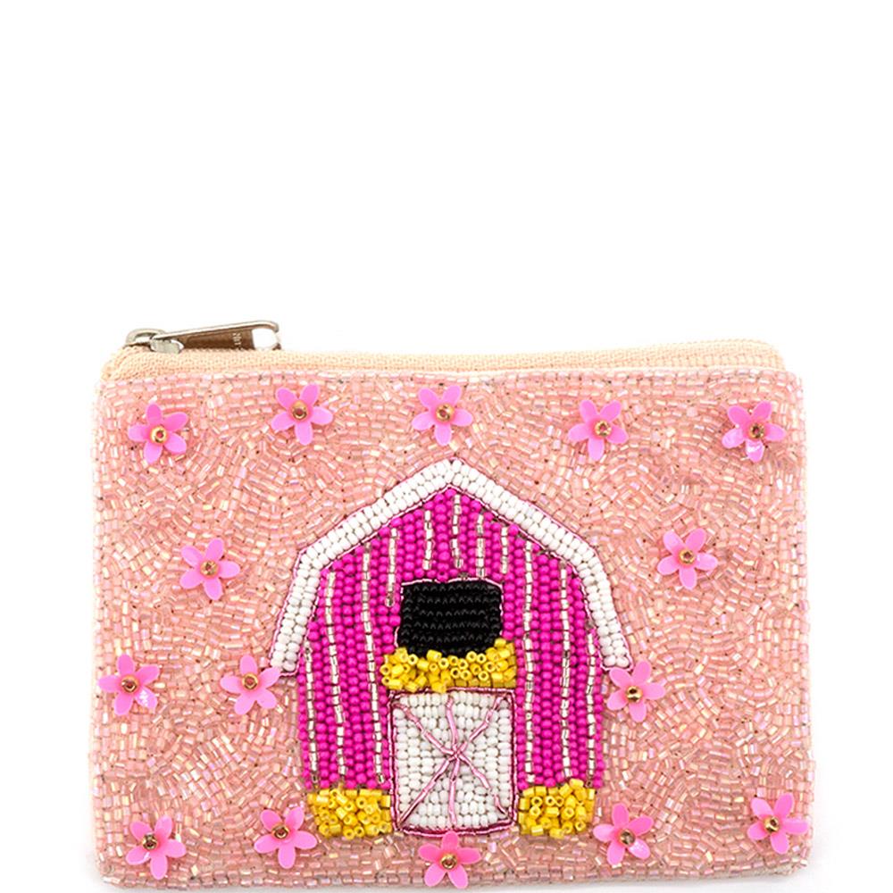 SEED BEAD BARN WITH FLOWER COIN BAG
