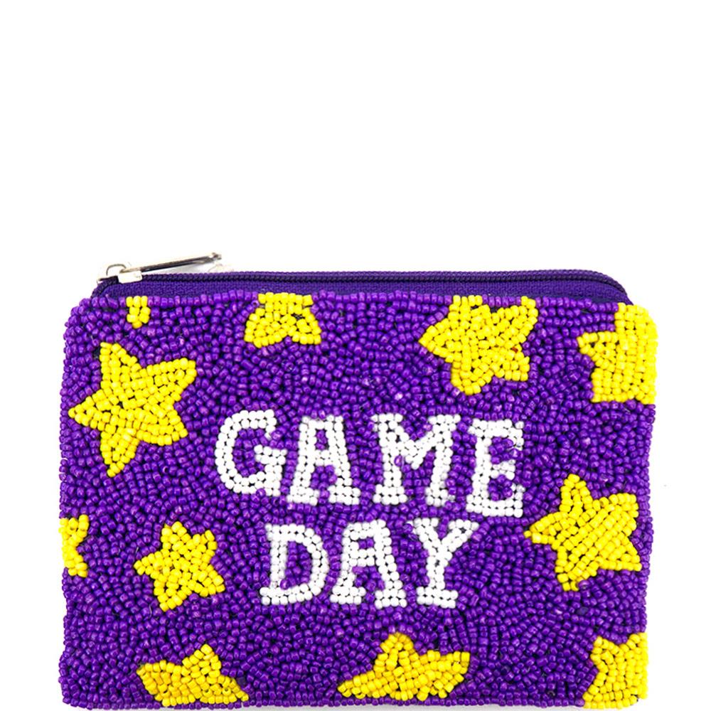 SEED BEAD GAME DAY TOUCHDOWN COIN PURSE BAG