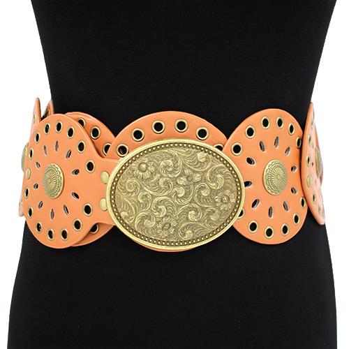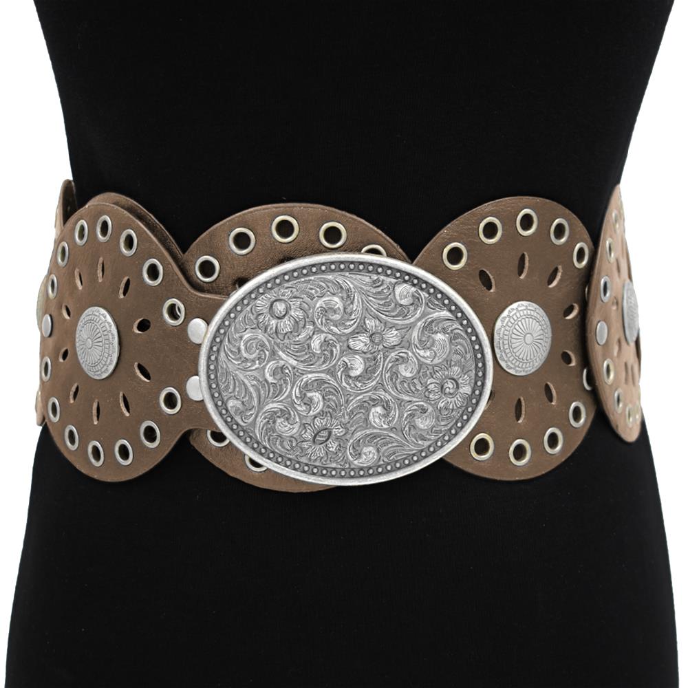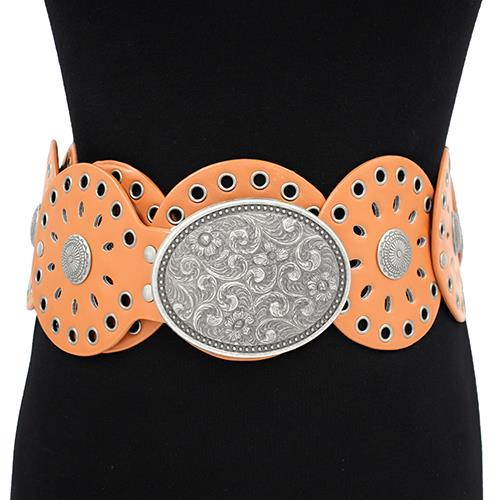 WESTERN TEARDROP TEXTURE CIRCLE CONCHO BELT