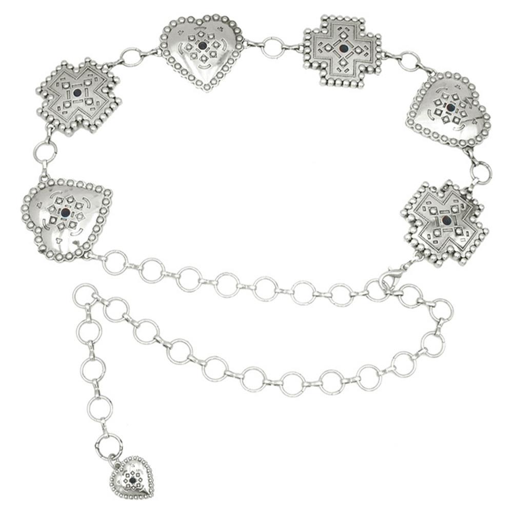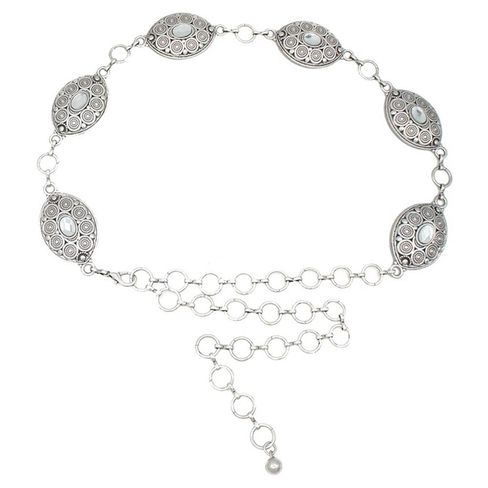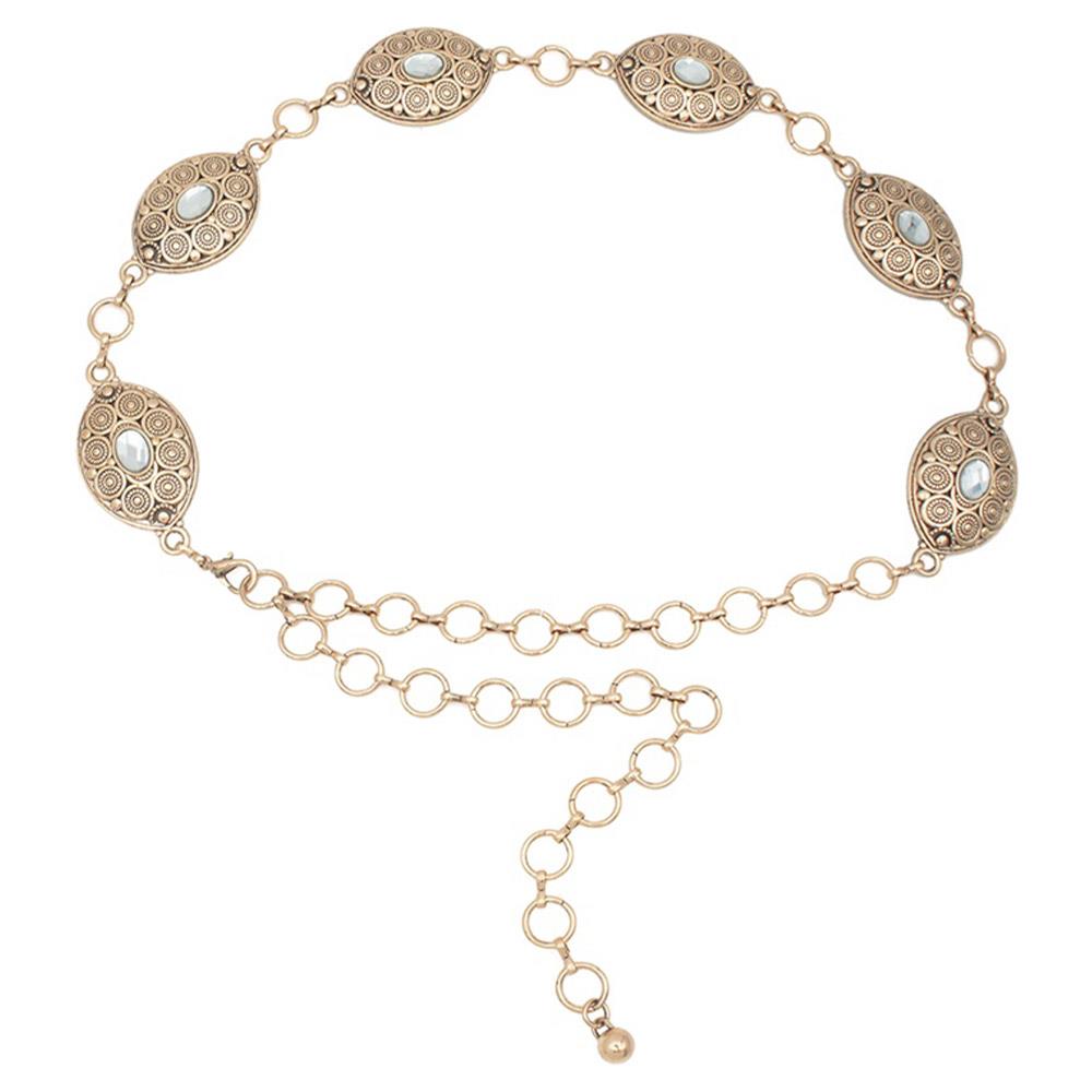 MOROCCAN SWIRL TEAR CONCHO STONE CHAIN BELT