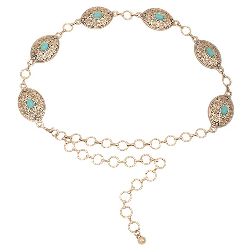 WESTERN METAL ENGRAVED CONCHO TURQUOISE CHAIN BELT