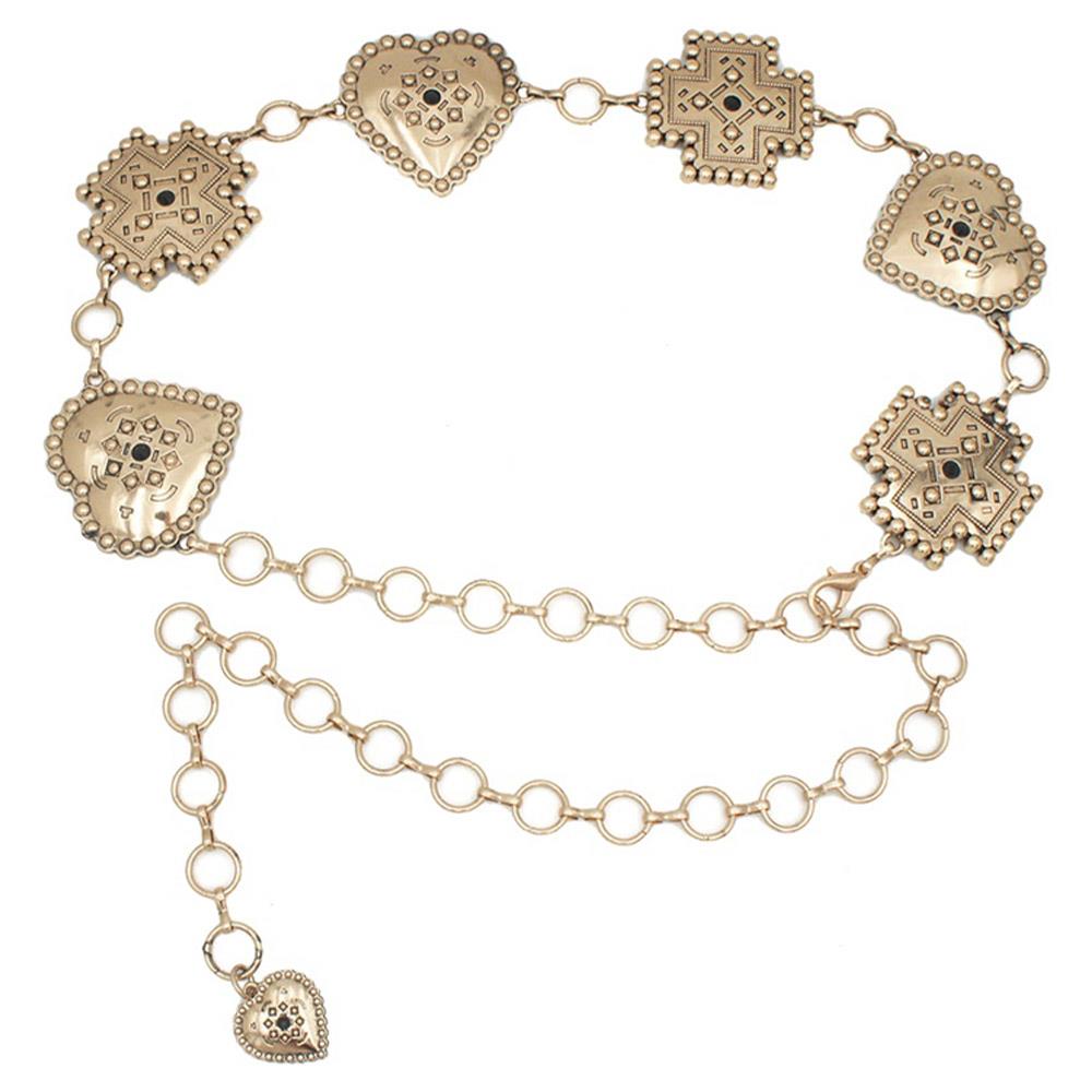 HEART CONCHO ACCENTED LINKED CHAIN DRAPE BELT