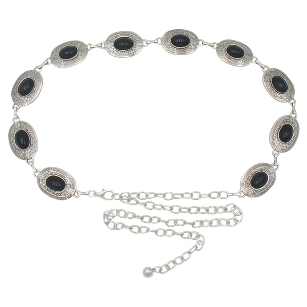 METAL LINK DIAMOND CONCHO ENGRAVED STONE WESTERN CHAIN BELT