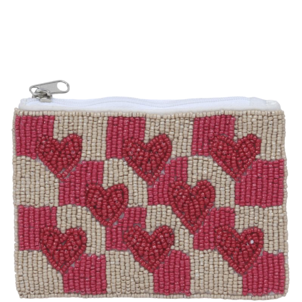 LOVE BEADED ZIPPER COIN PURSE BAG POUCH