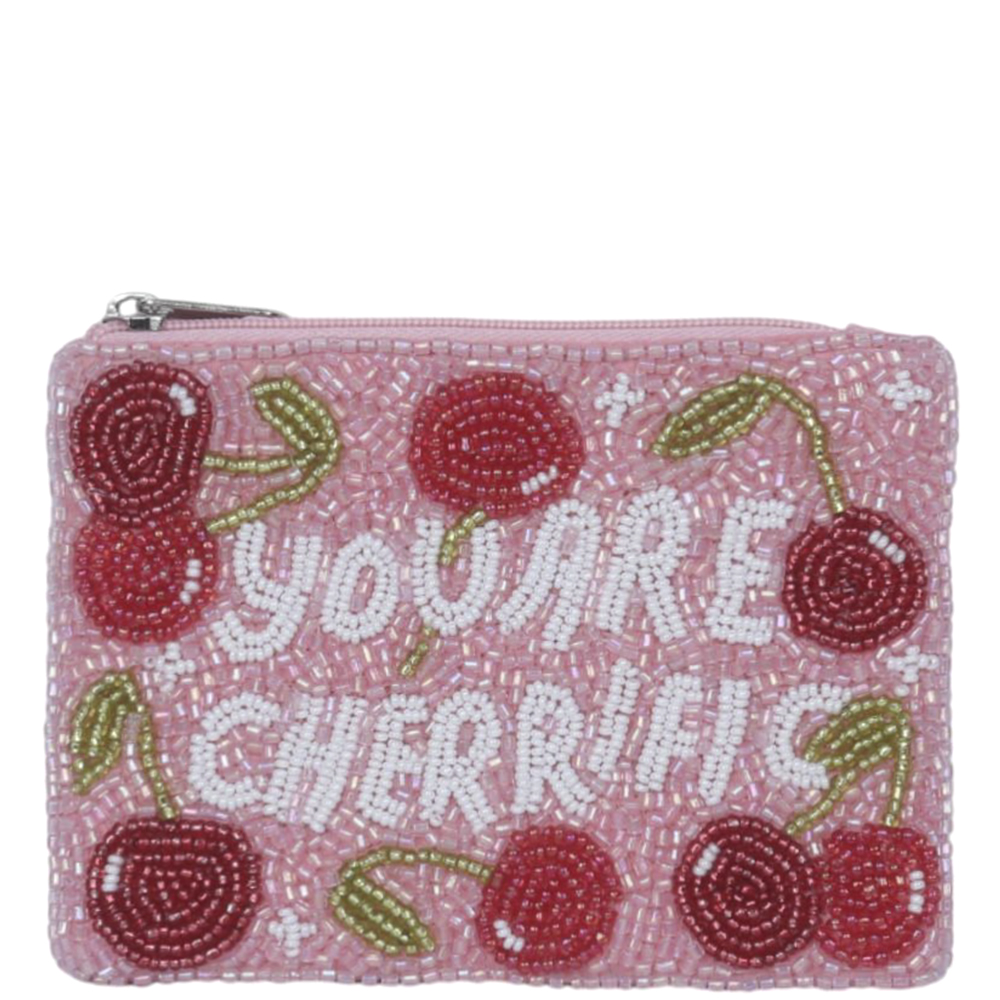 YOU ARE CHERRIFIC BEADED ZIPPER COIN PURSE BAG POUCH