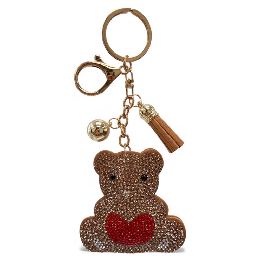 RHINESTONE TEDDY BEAR KEYCHAIN WITH TASSEL