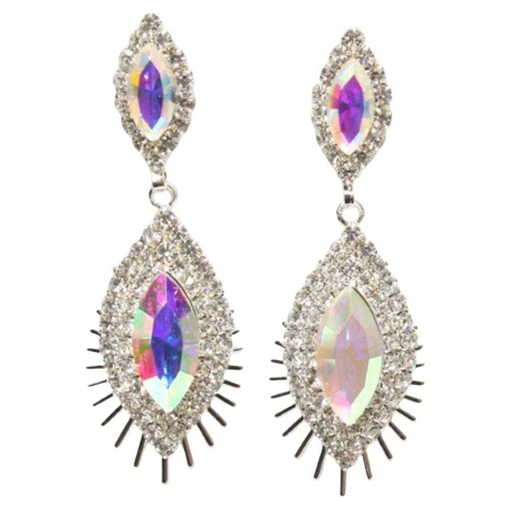 TEARDROP GEMSTONE & RHINESTONE PARTY BRIDAL EARRING