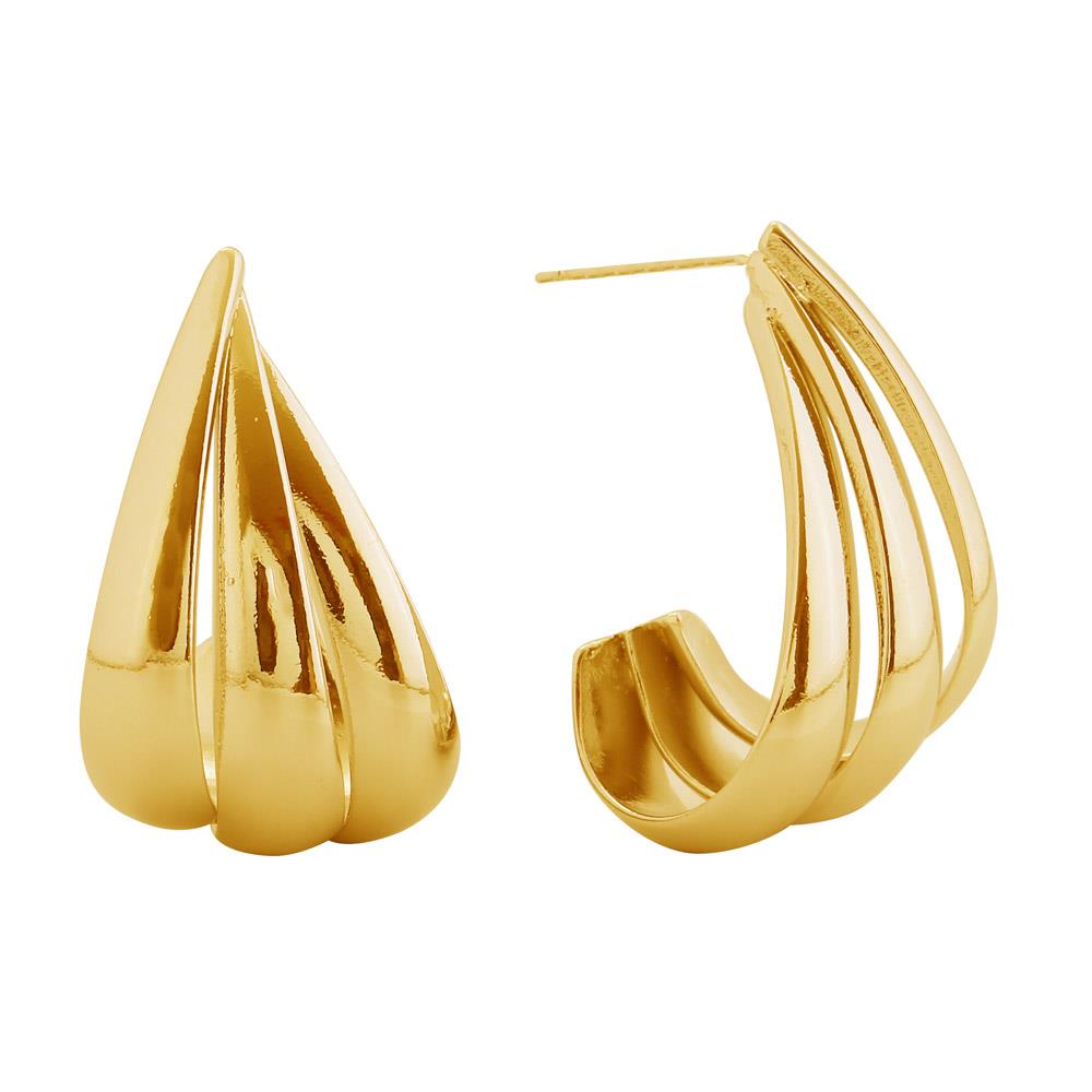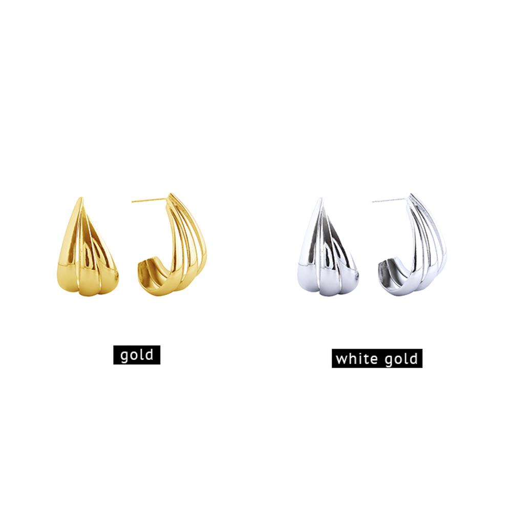 14K GOLD/WHITE GOLD DIPPED CURVED HOOP EARRINGS