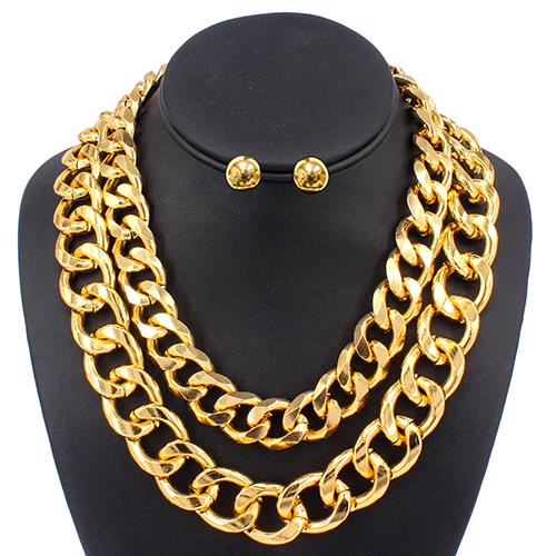 CHUNKY 2 LAYERED LINK CHAIN METAL SHORT NECKLACE