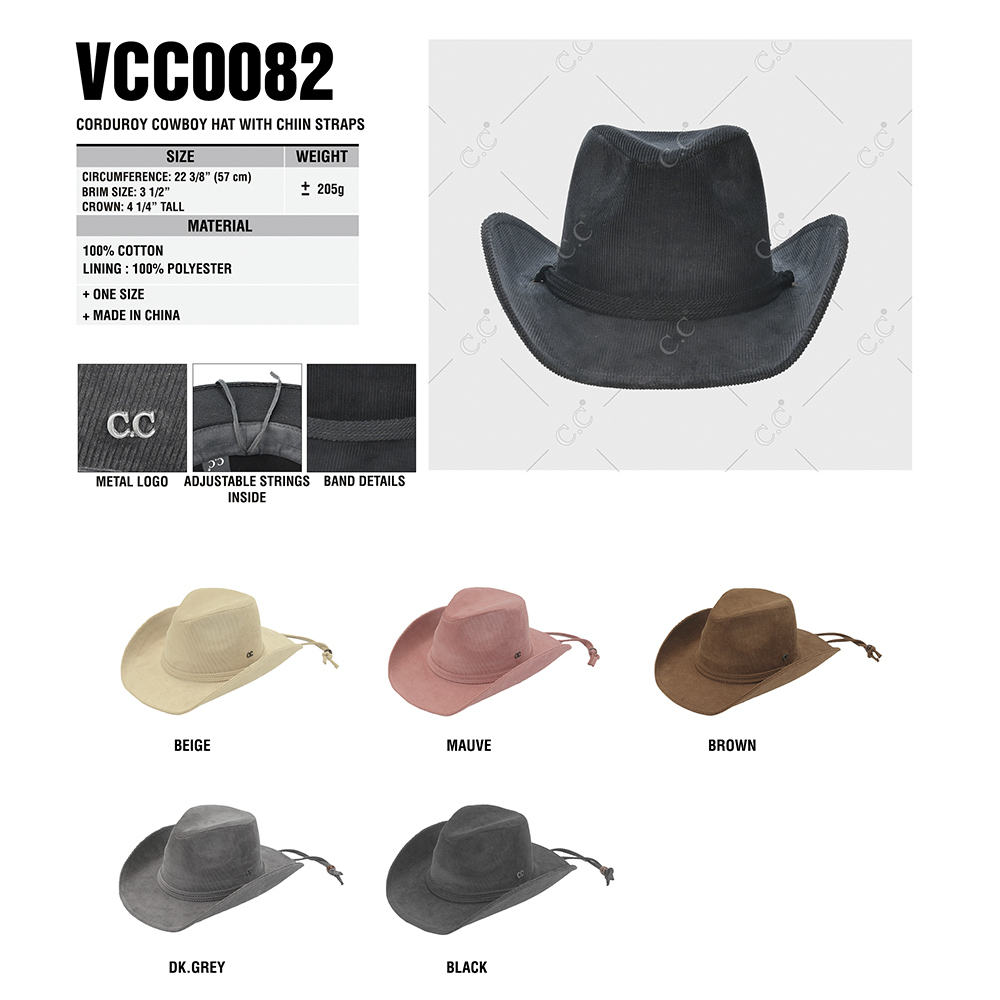 CORDUROY COWBOY HAT WITH CHIN STRAPS