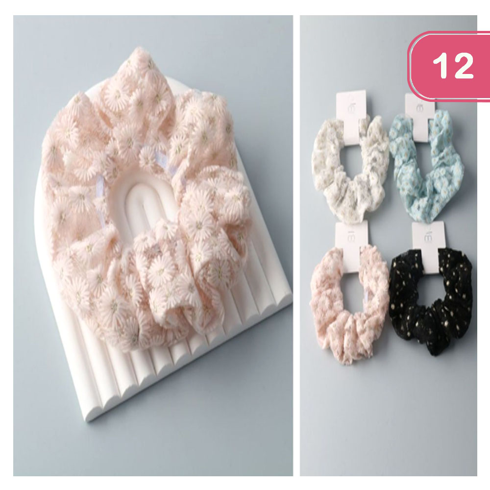 DAISIES EMBROIDERED SCRUNCHIE (12 UNITS)