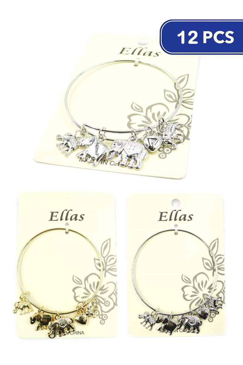 FASHION ELEPHANT CHARM BANGLE BRACELET (12 UNITS)