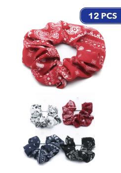 FASHION PAISLEY HAIR SCRUNCHIES (12 UNITS)