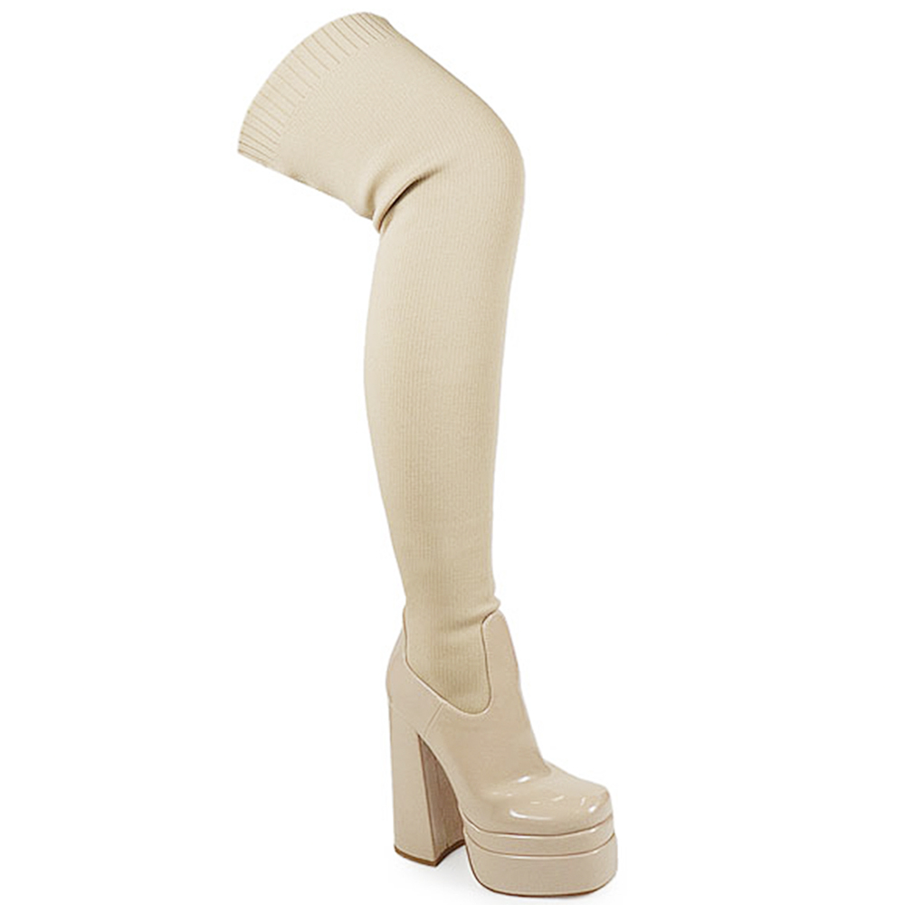 KNIT HIGH PLATFORM THIGH HIGH BOOTS 12 PAIRS