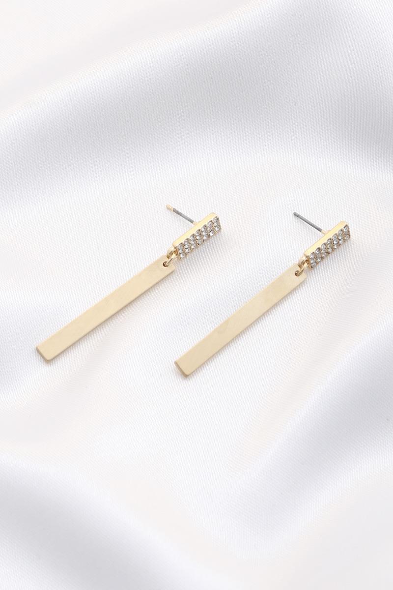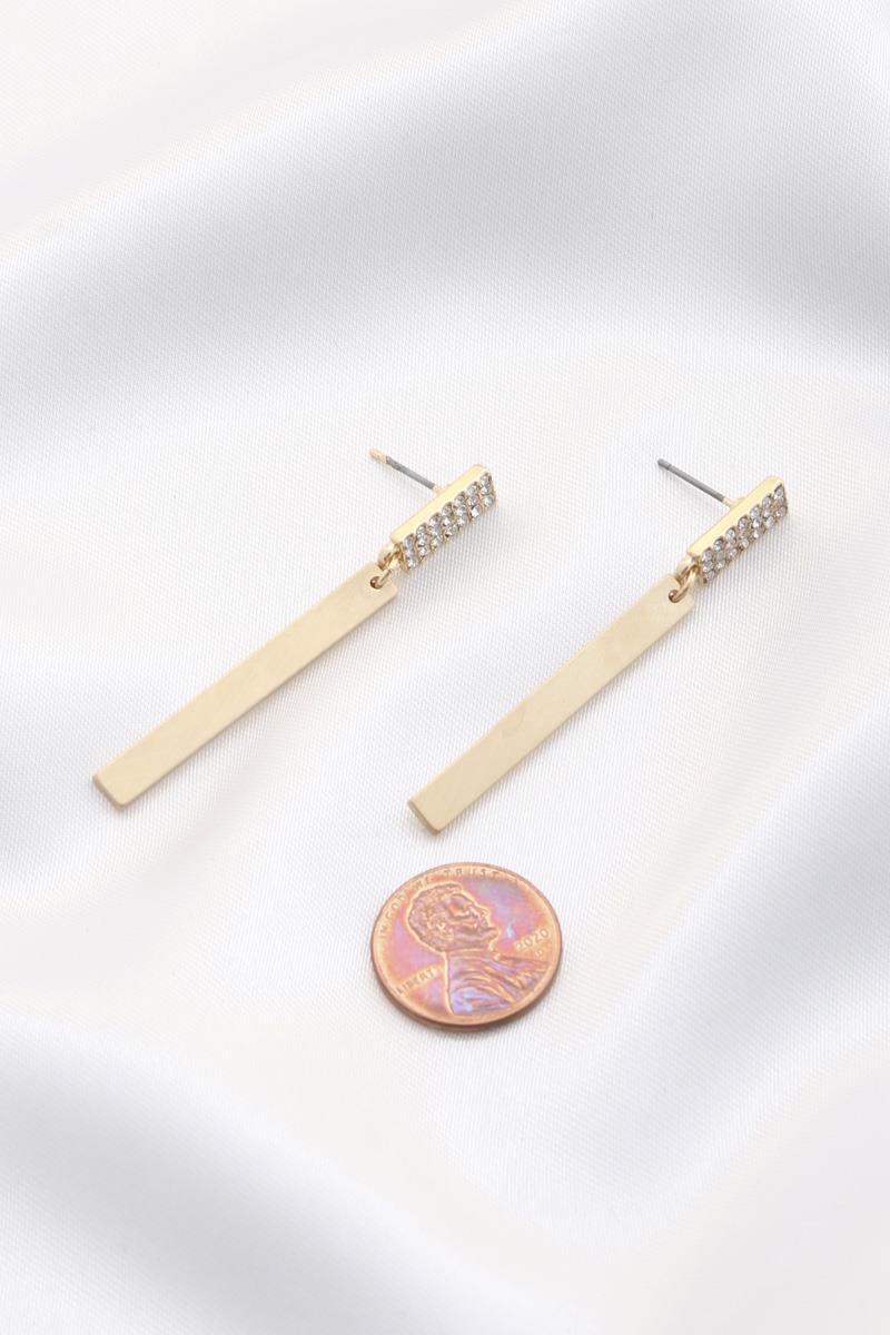 METAL BAR RHINESTONE DANGLE EARRING