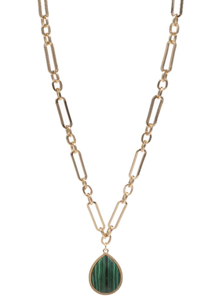 METAL OVAL CHAIN TQ STONE PENDANT LONG NECKLACE