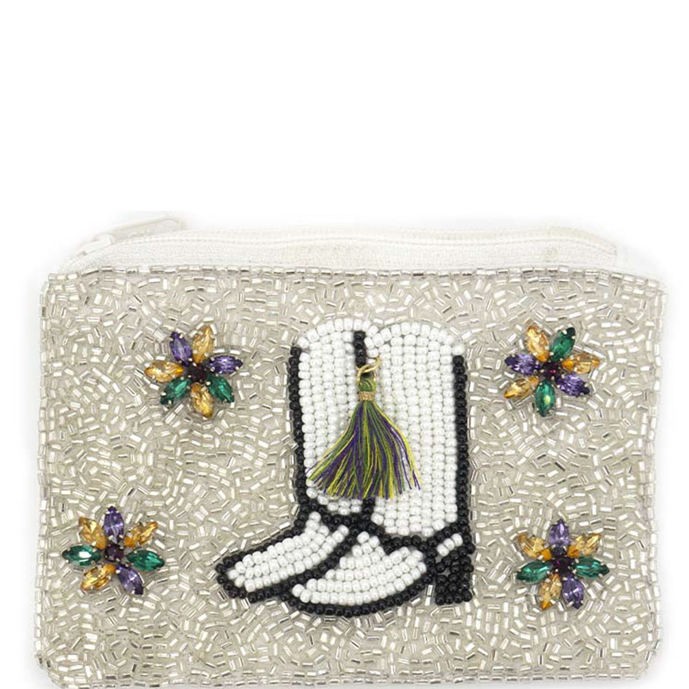 RHINESTONE BEAD COWGIRL BOOTS MARDI GRAS COIN BAG