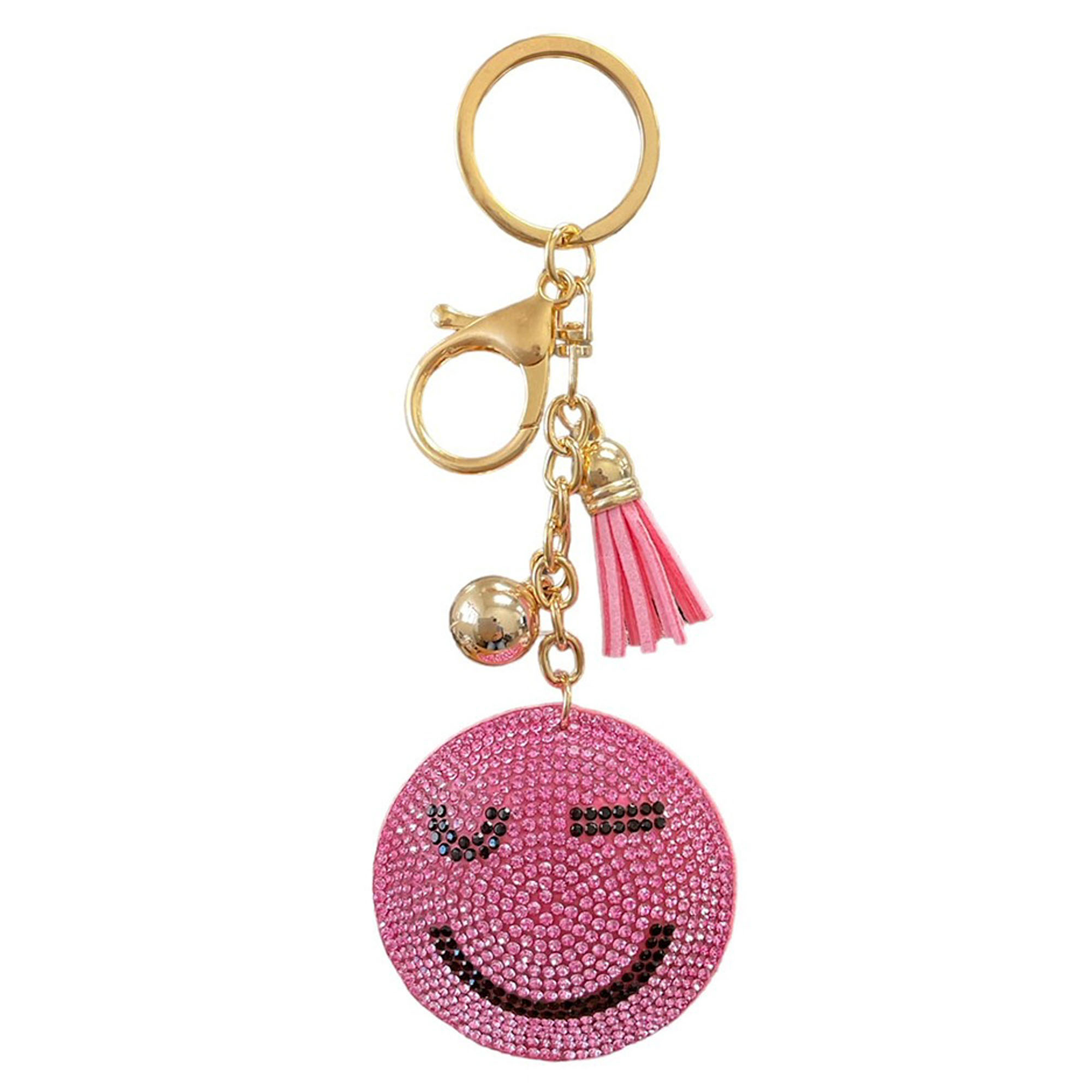 RHINESTONE FACE KEYCHAIN WITH TASSEL