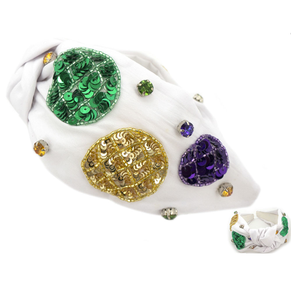 RHINESTONE SEQUIN MARDI GRAS COLORS HEADBAND