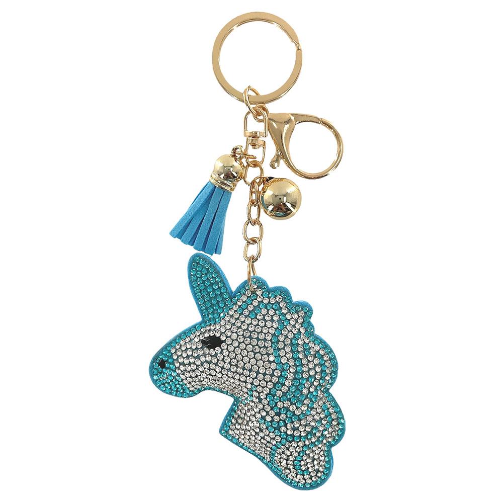 RHINESTONE UNICORN KEYCHAIN WITH TASSEL