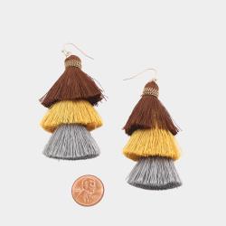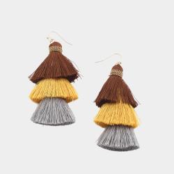 THREAD TRIPLE TASSEL DANGLE EARRING