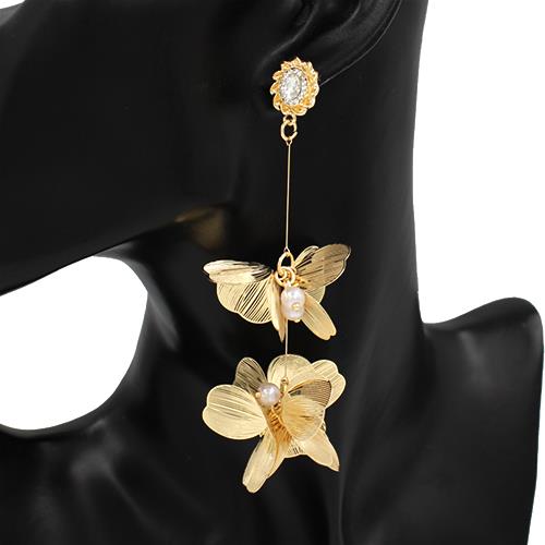 WIDE METAL FLOWER DANGLE EARRING