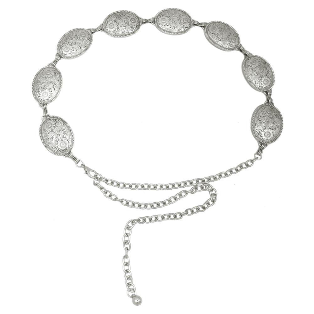 DOUBLE SWIRL FLORA CONCHO CHAIN BELT
