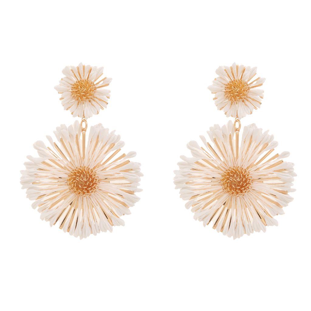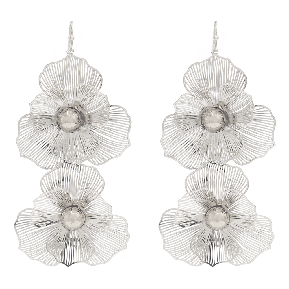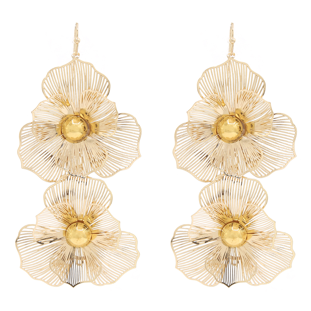 METAL WIRE FLOWER STATEMENT DANGLE EARRING
