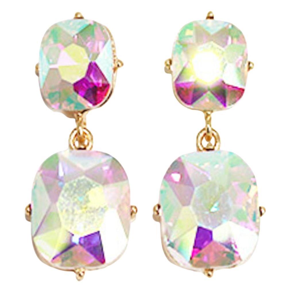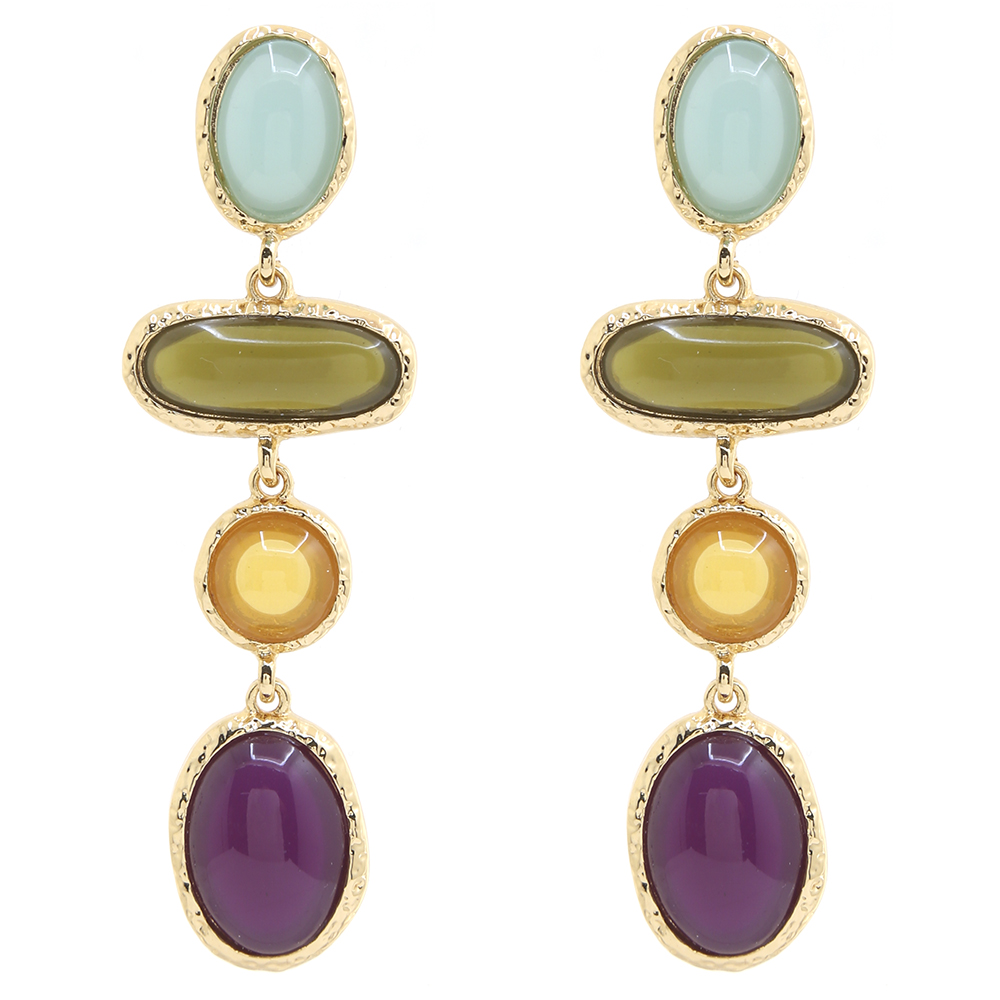SDJ ROUND OVAL MIX COLOR GEM DROP EARRING