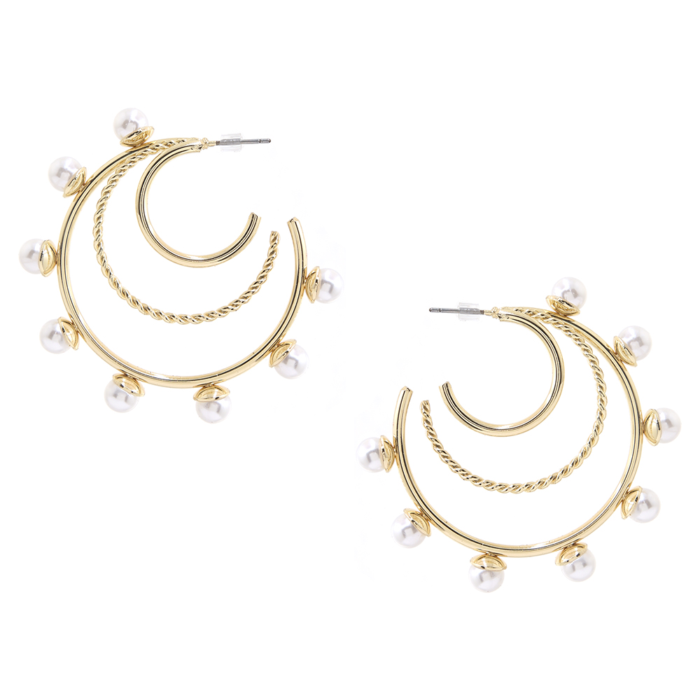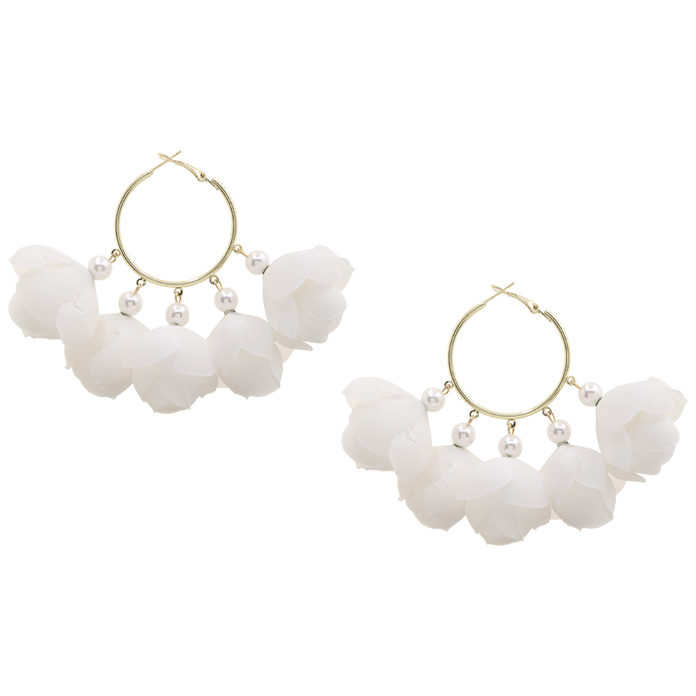 SDJ FLOWER DANGLE PEARL LINK HOOP EARRING