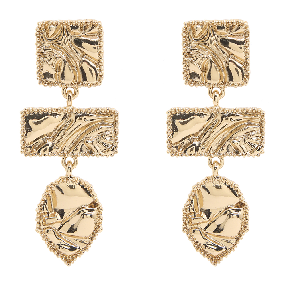 SDJ GEOMETRIC METAL TEXTURED DANGLE EARRING