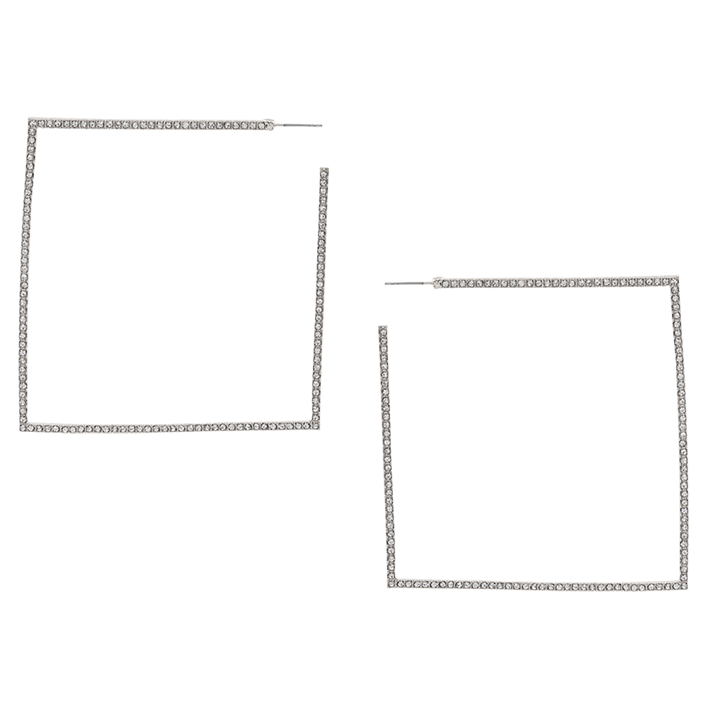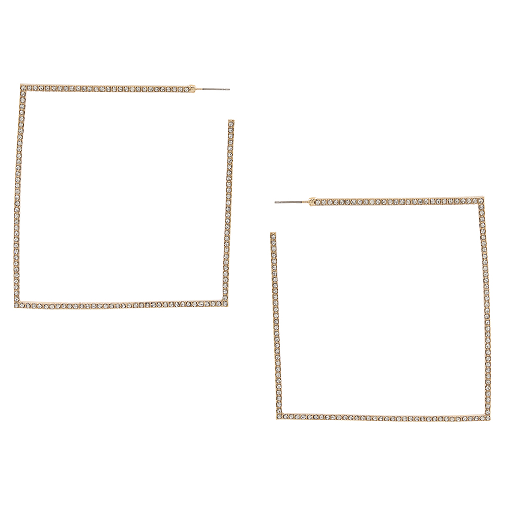 SDJ OPEN THIN SQUARE RHINESTONE METAL EARRING