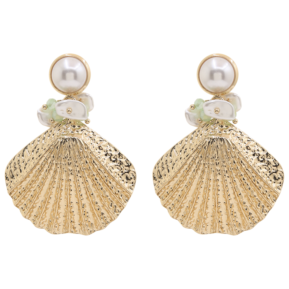 METAL SHELL ORNAMENT CLUSTER DANGLE EARRING