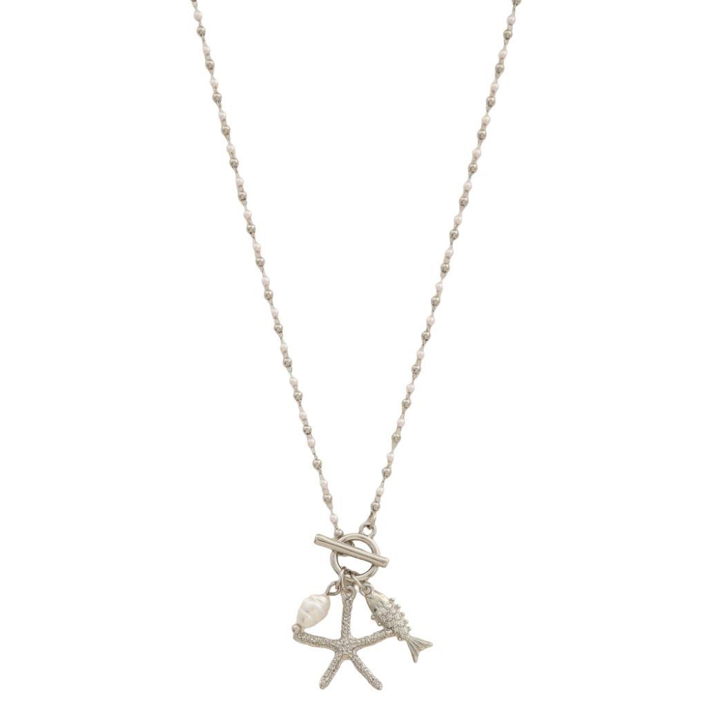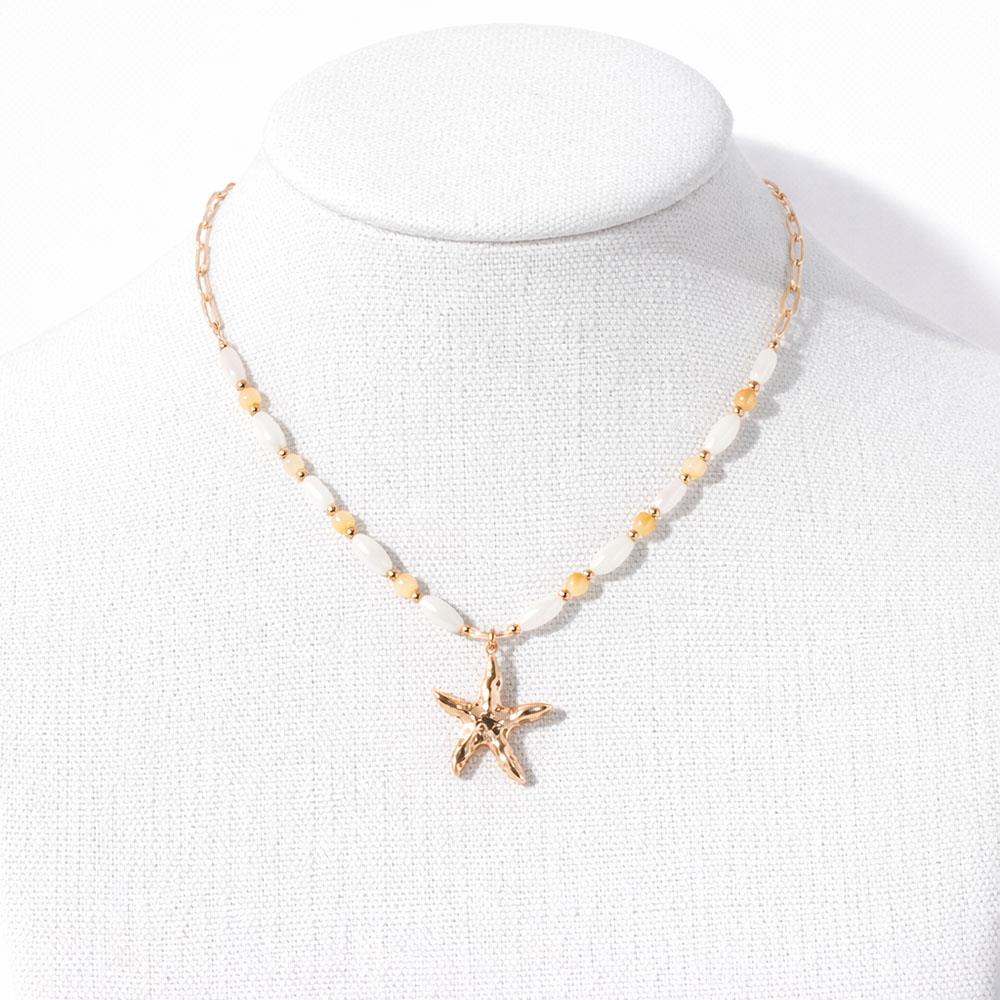 MULTI BEAD LAYERED STARFISH PENDANT NECKLACE
