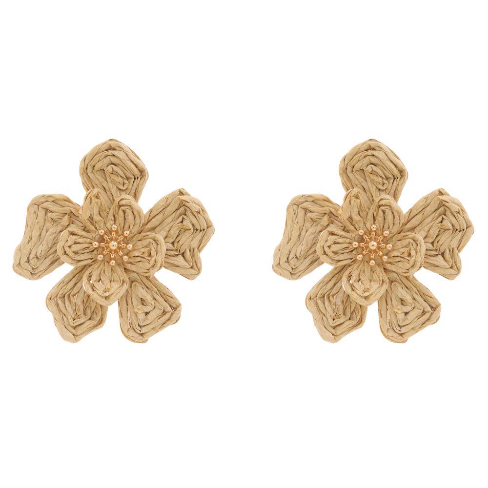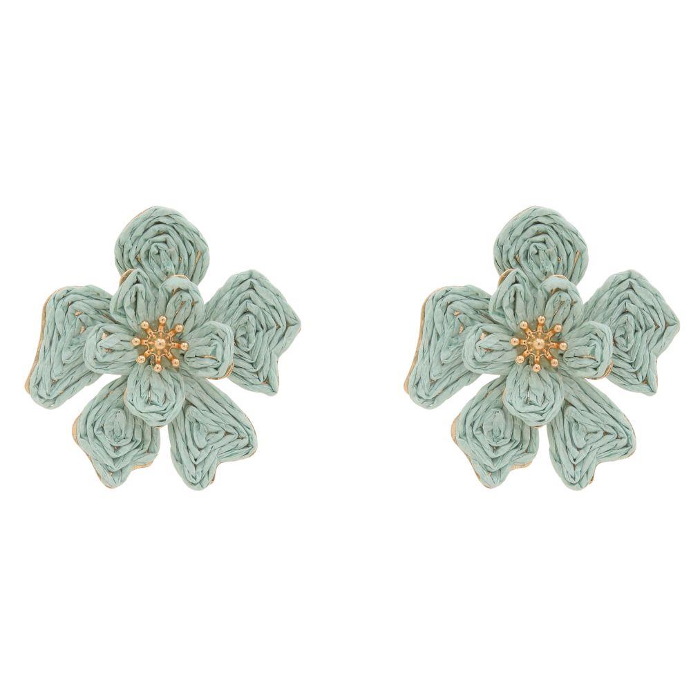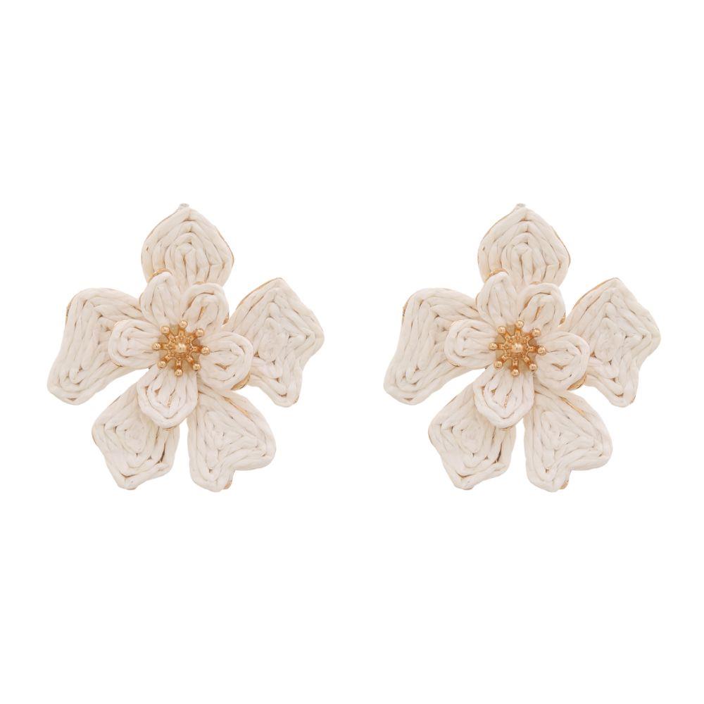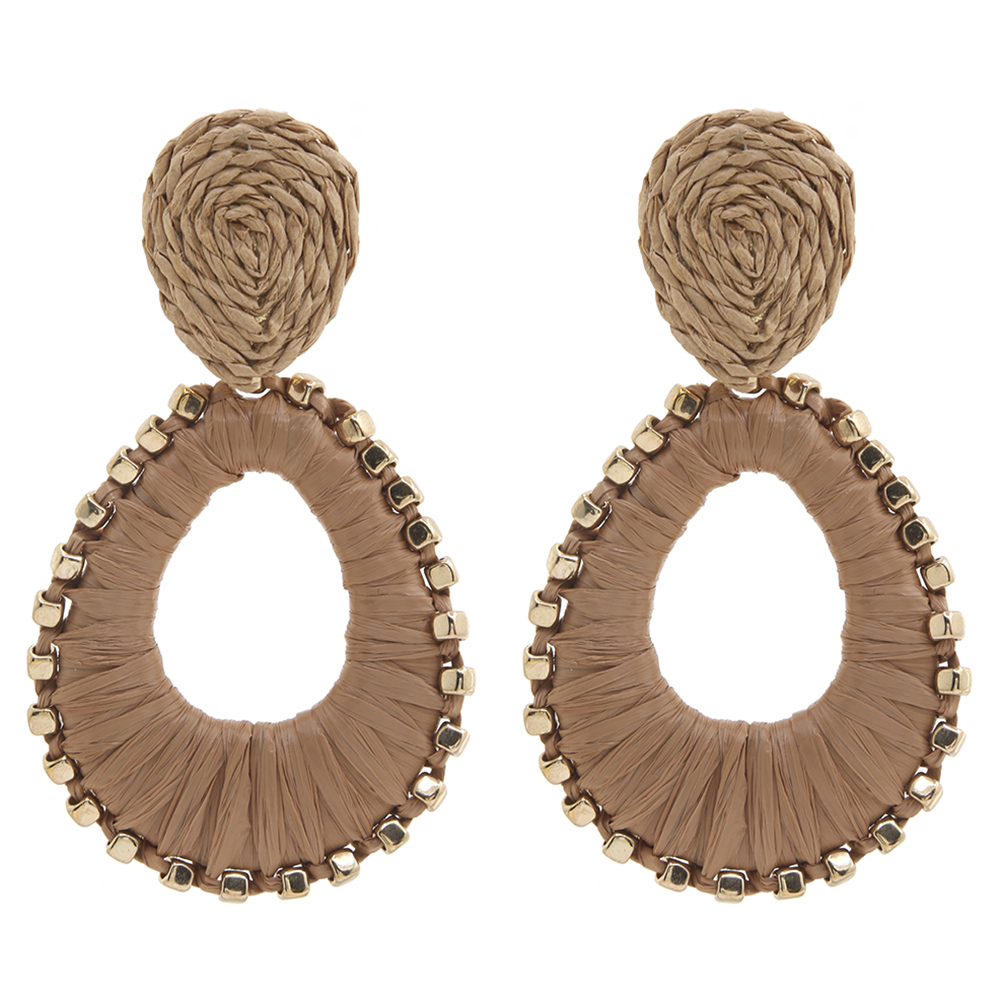 WOVEN RAFFIA OPEN STUD TEARDROP SHAPE EARRING