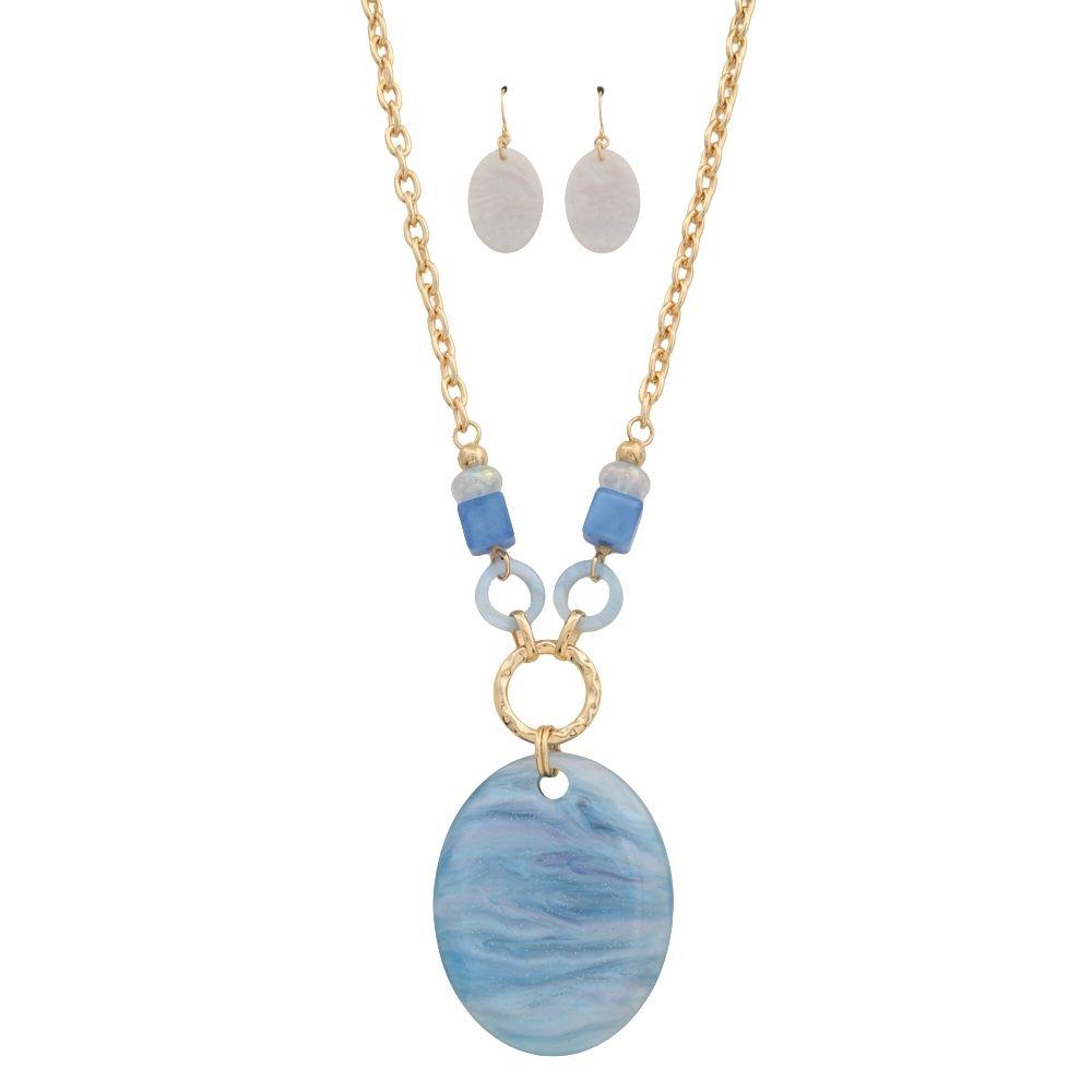 METAL STONE PENDANT STATEMENT NECKLACE EARRING SET