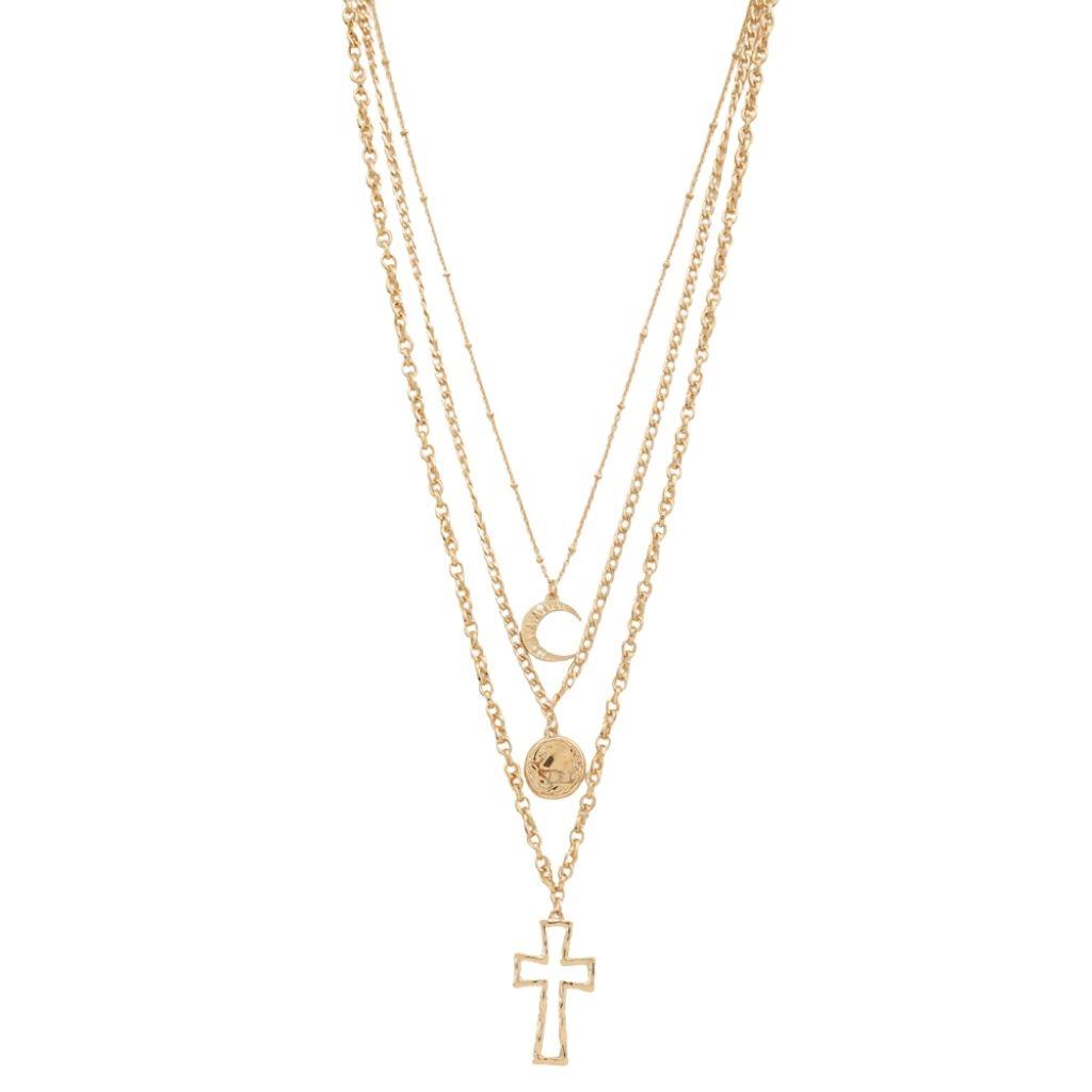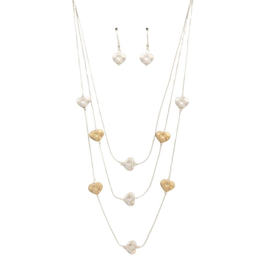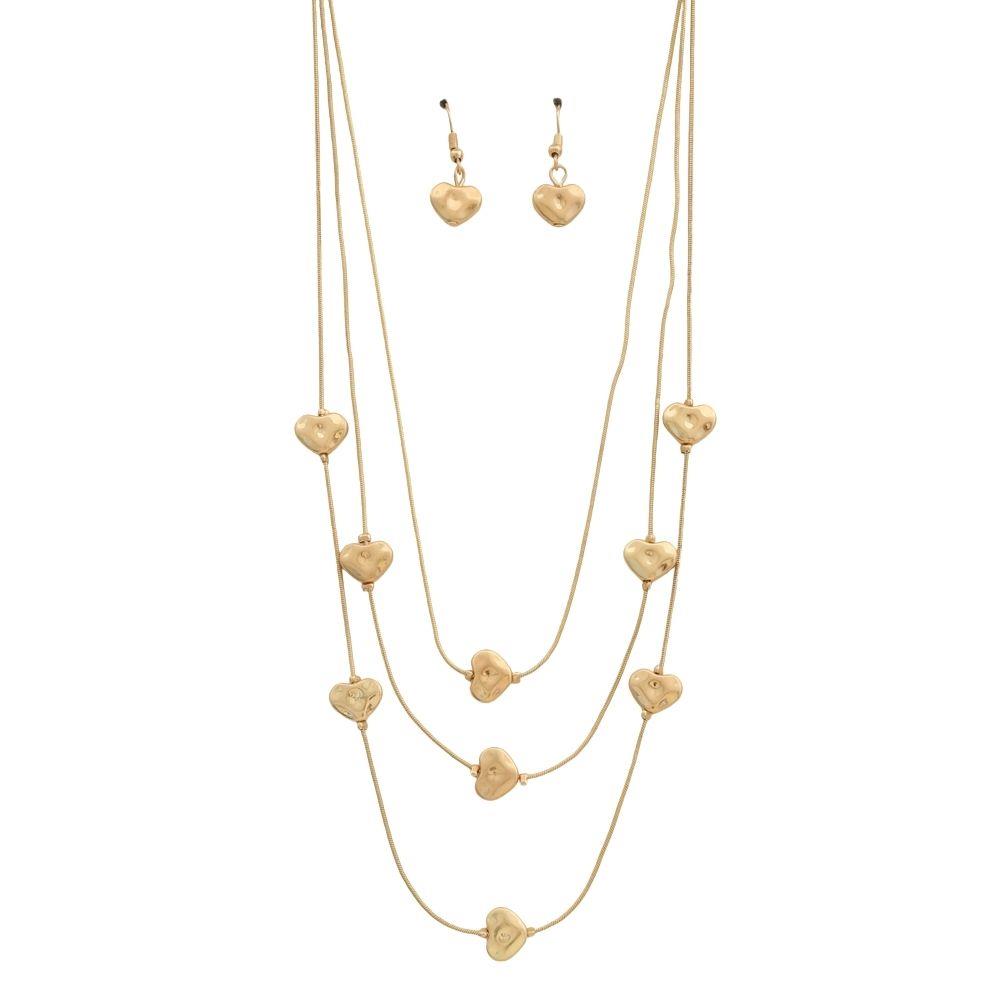 MULTI CHAIN HEART 3 LAYERED LONG NECKLACE EARRING SET