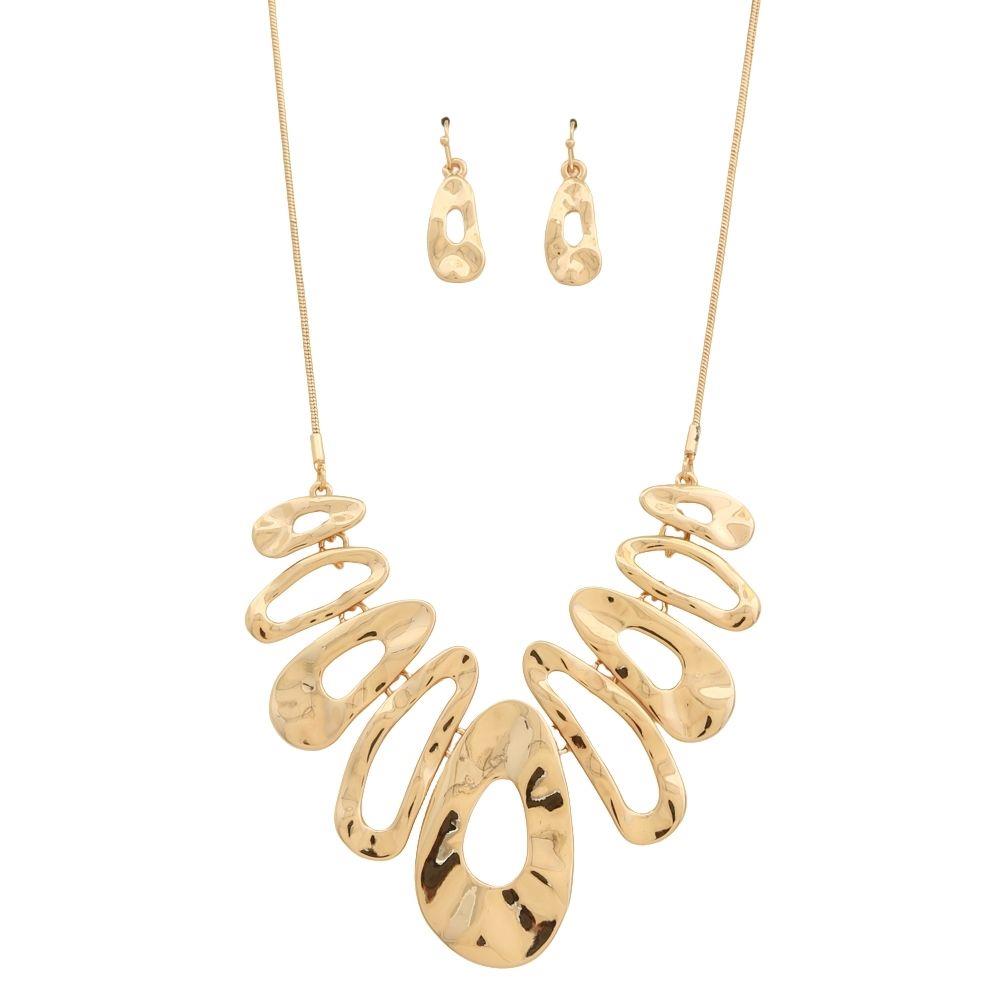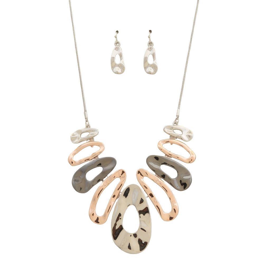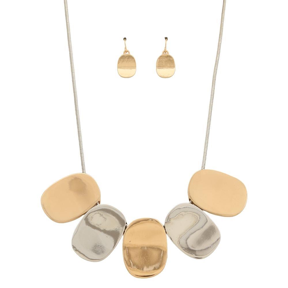 METAL ABSTRACT DISC STATEMENT NECKLACE EARRING SET